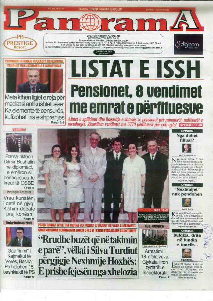 • Adresa: Rruga “Mihal Popi”, Pallatet 1 Maji, Shkalla 26, Apartamenti 5, Tiranë