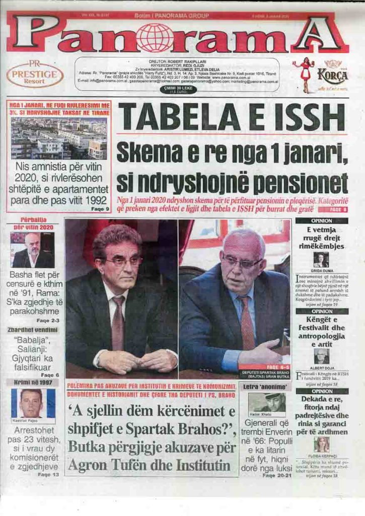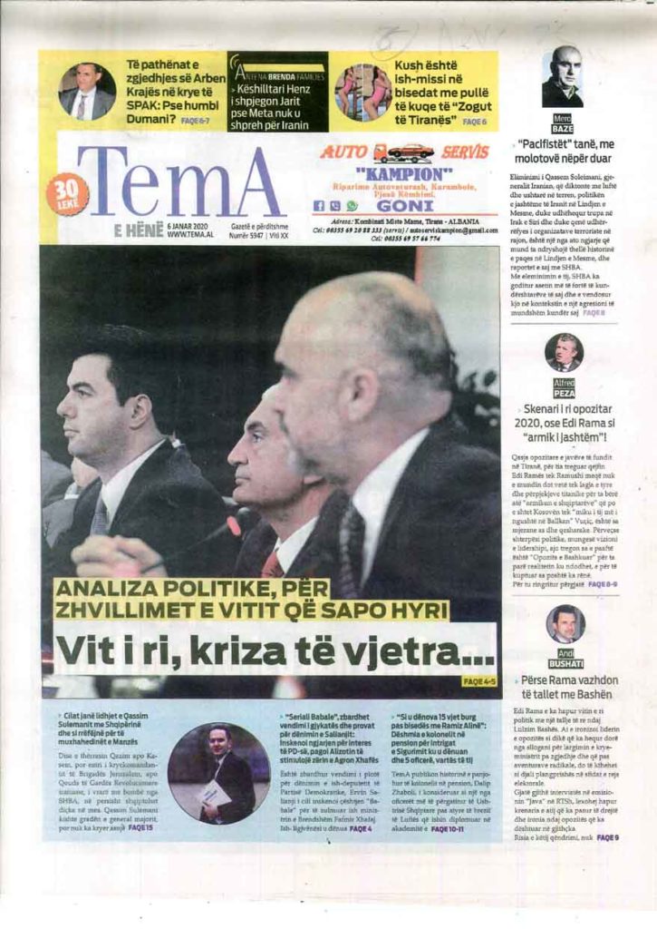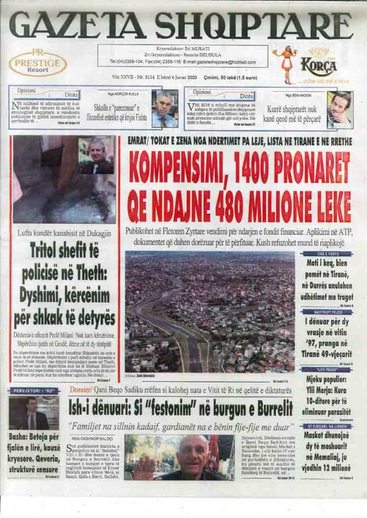 Shtypi i ditës, e hënë 6 janar 2020