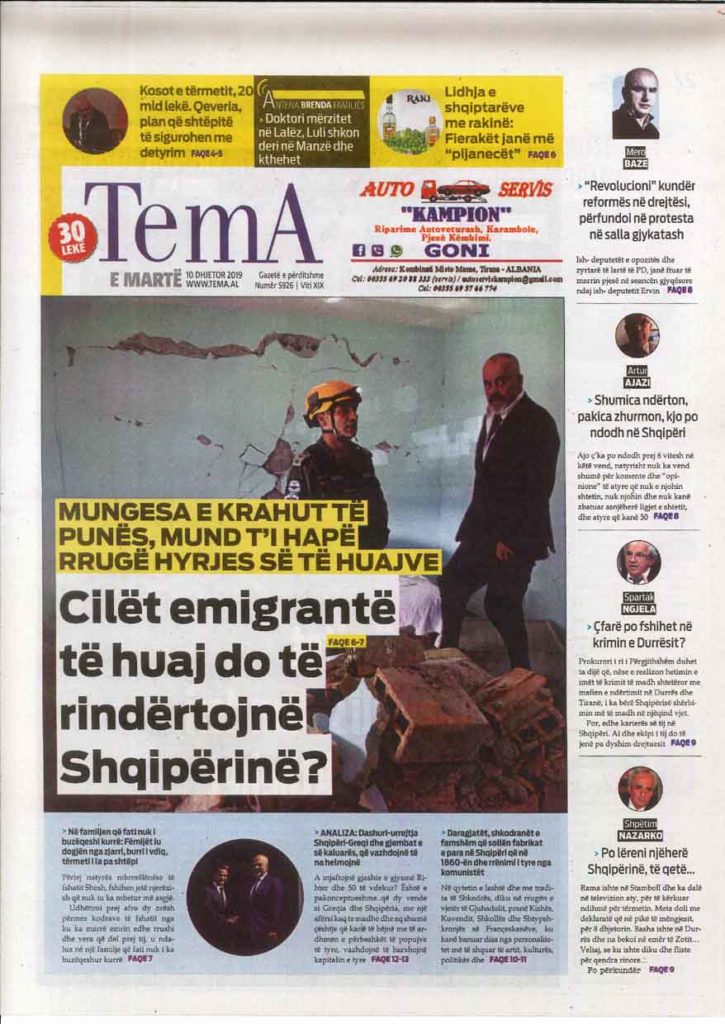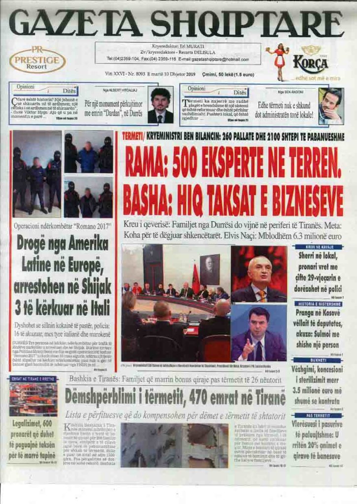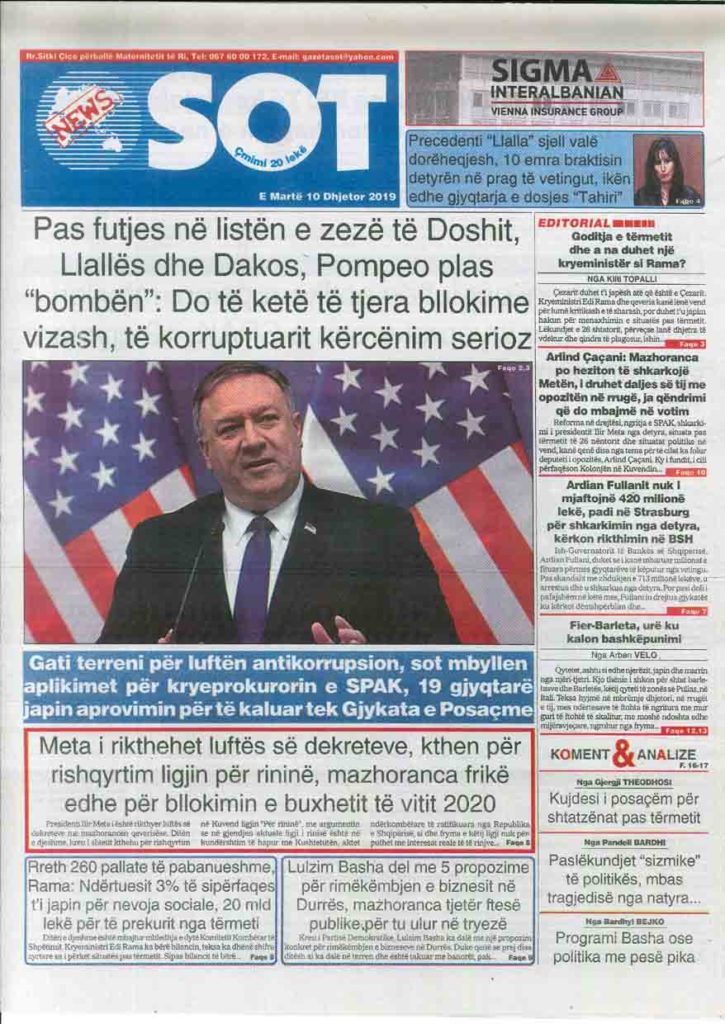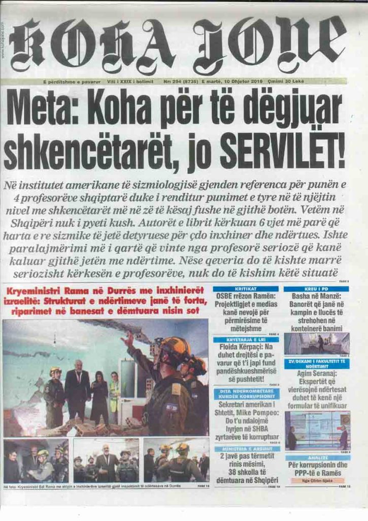 Shtypi i ditës, e martë 10 dhjetor 2019