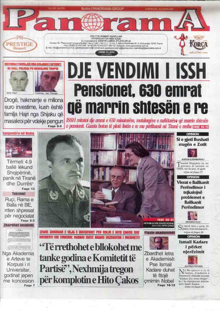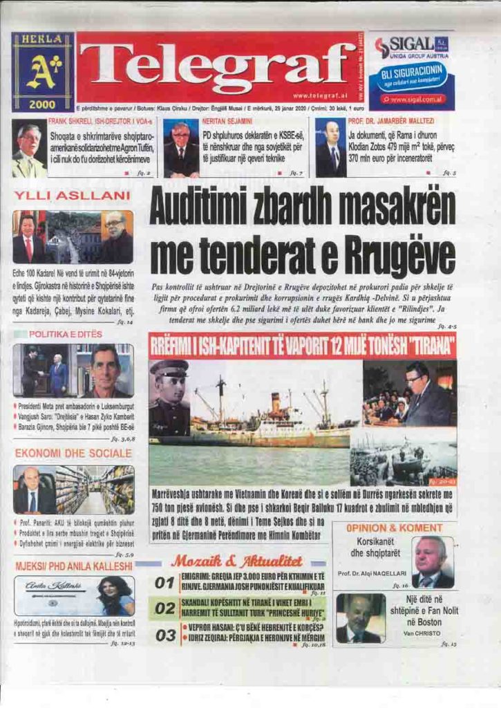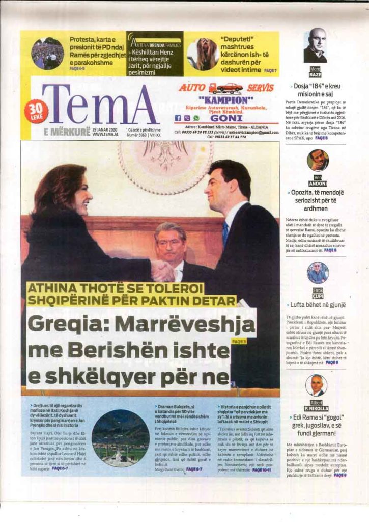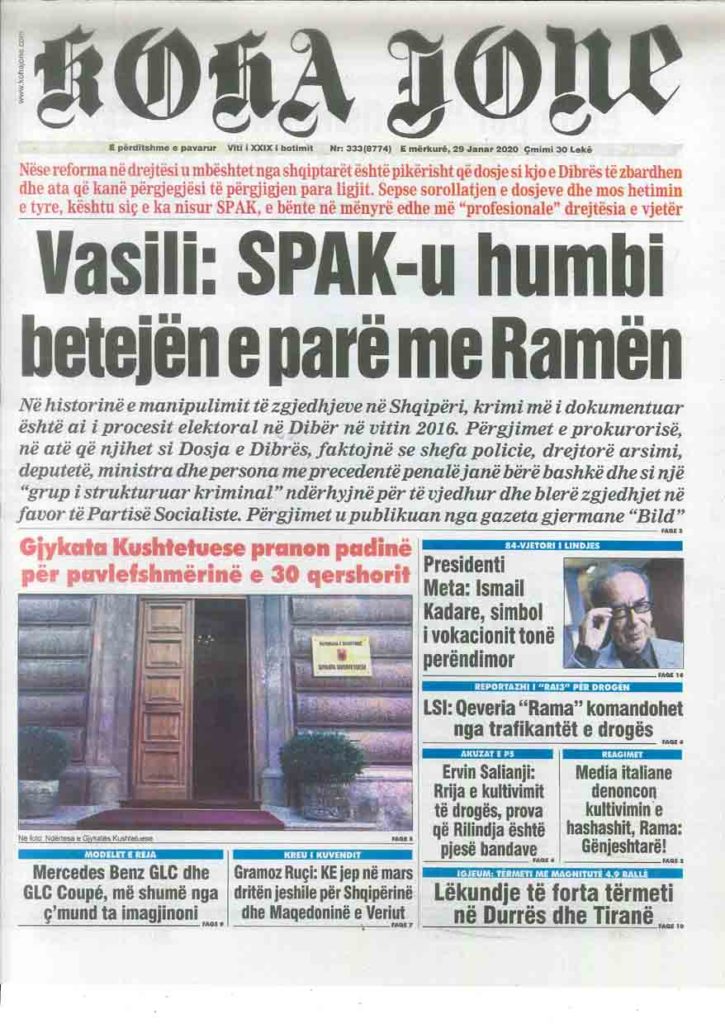 Shtypi i ditës, e mërkurë 29 janar 2020