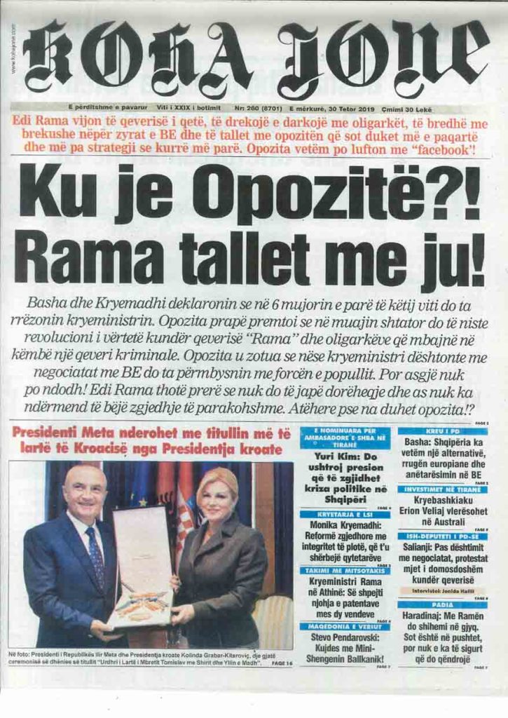 Shtypi i ditës, e mërkurë 30 tetor 2019