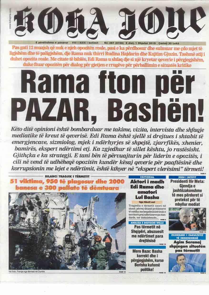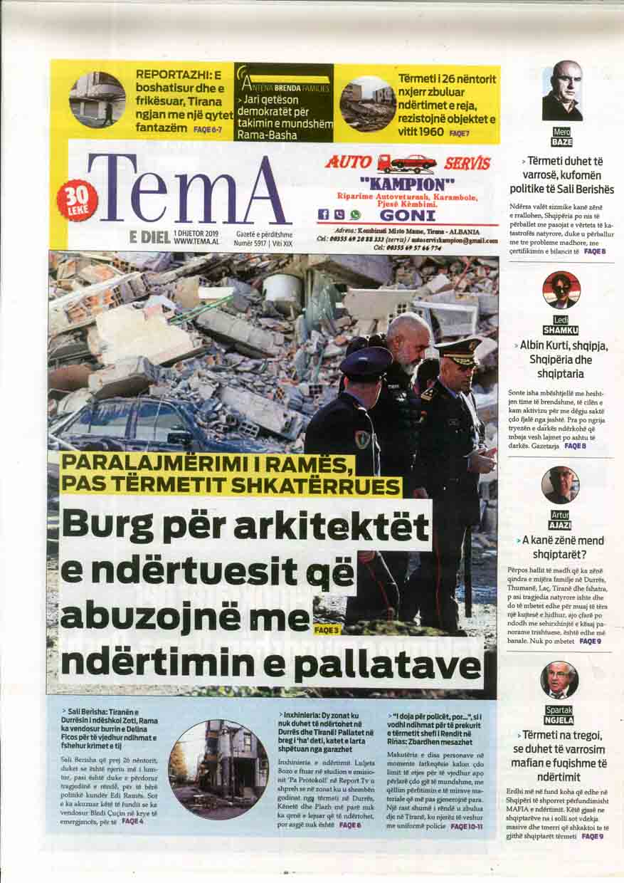 Tema kryesore e ditës së sotme ne gazetat e perditshme mbetet tërmeti.