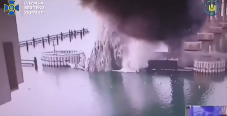 Në tetor 2022, një kamion-bombë e shërbimeve sekrete ukrainase, që vinte nga Rusia, shpërtheu në mes të një hapësire, duke shkaktuar fundosjen e dy korsive në det, ndërsa dy të tjera u dëmtuan gjithashtu nga zjarri i vagonëve të cisternave të një treni që po kalonte pranë automjetit kamikaz.