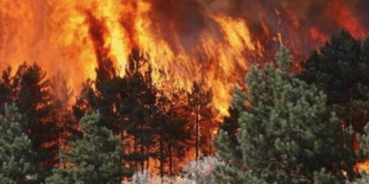 Në Tepelenë, midis fshatrave Turan dhe Dukaj, Nj. Adm. Qendër, ku po punohet nga forcat për shuarjen e zjarrit.