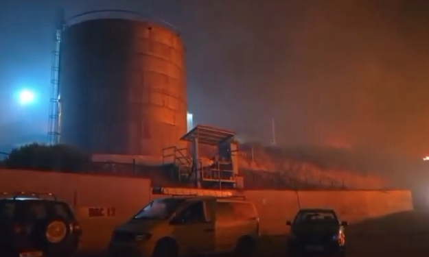 Në pamje, duket që zjarri është afruar pranë depozitës së karburantit.
