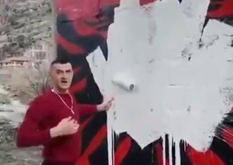 Një mercenar serb ka fshirë me bojë flamurin shqiptar. Ngjarja ka ndodhur në fshatin Tuz të Malit të Zi, ku një i ri nga Serbia është parë me dy kova bojë në duar dhe një furçë duke fshirë flamurin shqiptar që ishte vizatuar në një pjesë muri.