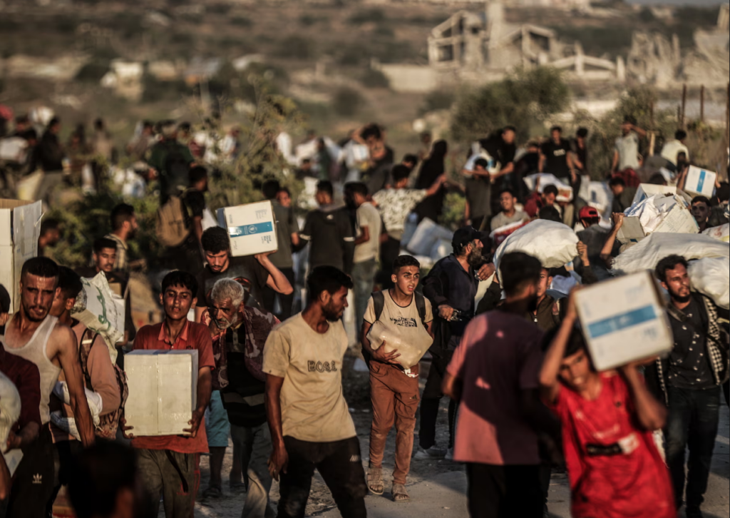 Ndihmat humanitare janë kthyer në pasuri strategjike, ku një thes mielli mund të arrijë deri në 500 dollarë. Kjo ka nxitur dhunë dhe grabitje të karvanëve humanitarë, shpesh nga civilë të uritur, por edhe nga banda të armatosura. Edhe pse lejohet hyrja e rreth 70 kamionëve në ditë, shumica ndalohen dhe plaçkiten para se të arrijnë tek ata që kanë më shumë nevojë.