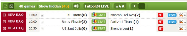 Askush nuk ishte i cmendur për të menduar se Tirana kishte shanse reale për të kaluar turin kundër Makabi tel aviv një klub I madh në arenën ndërkombëtare, një skuadër që objektivat ka grupet e europa ligës ose champions ligës. Megjithatë ndeshja e parë la një shije të mirë. Humbje 2-0 por një e tillë dinjitoze. Ndeshja në Tiranë do luhet me të njëjtin stil, që Tirana të lërë një shije të mirë. Ndeshjet e kthimit luhen sot, sipas orarit të mëposhtëm. /atsh/b.d