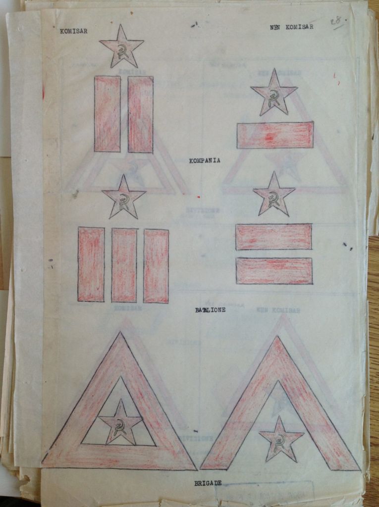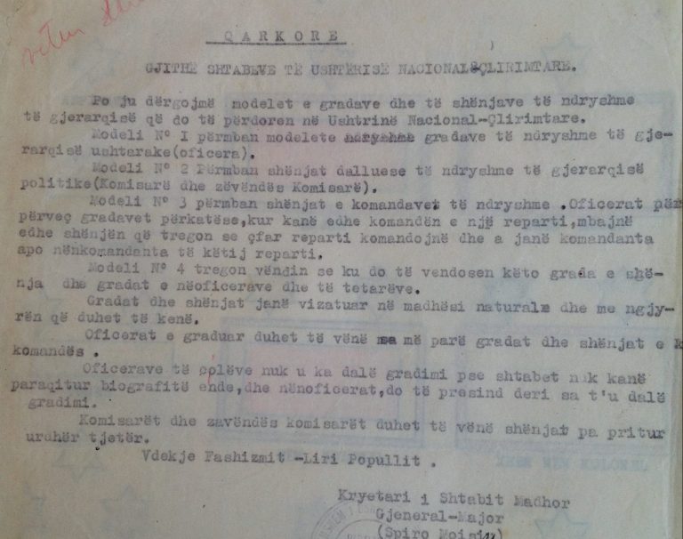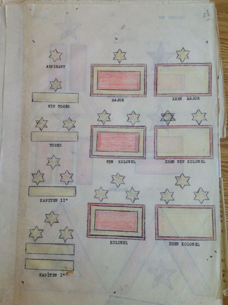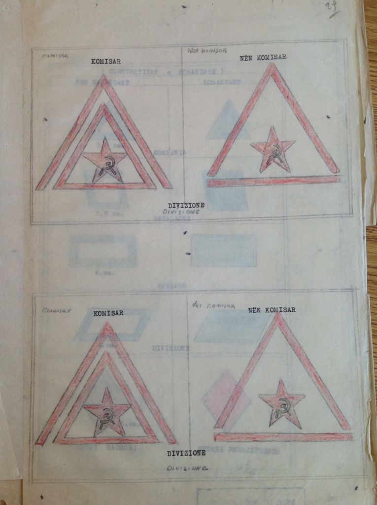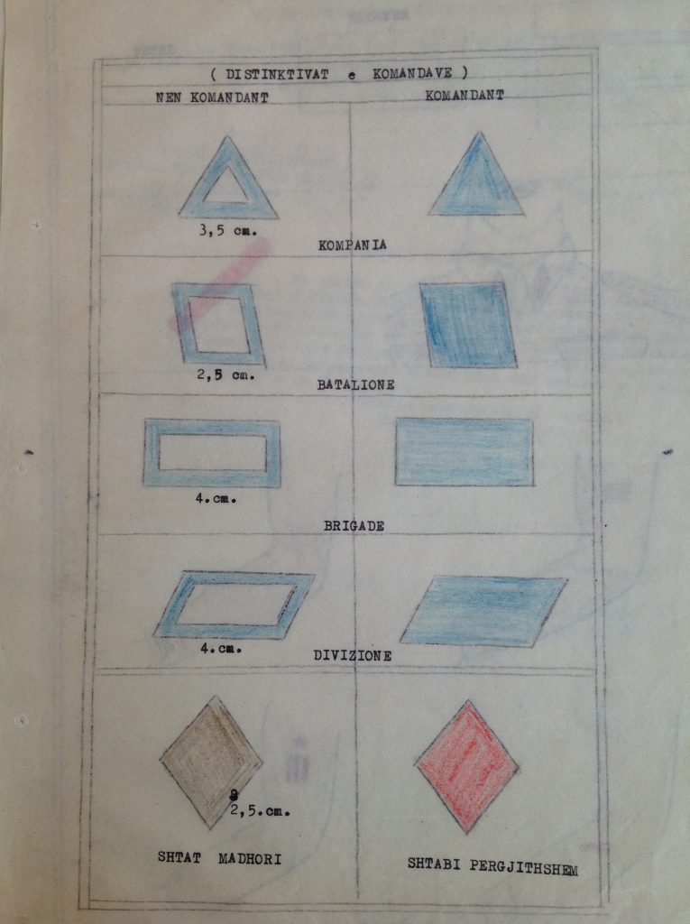 Në një prej dosjeve të Shabit të Përgjithshëm ruhen pikërisht këto dizenjime të gradave dhe shenjave të ndryshme të hierarkisë që do të përdorte ushtria.