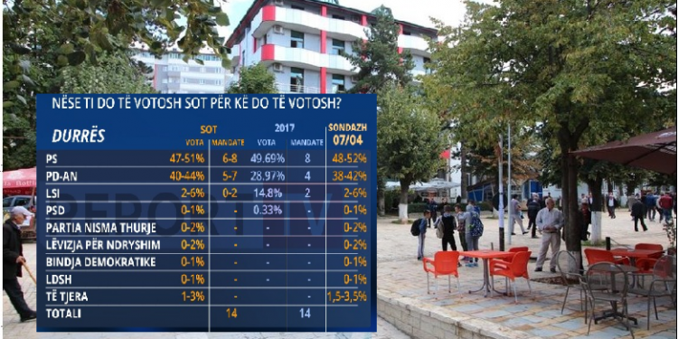 Gjithashtu edhe PS lufton fort për 3 mandate në skenarin më të mirë, por që në përqindje votash është më poshtë se PD me aleatët pasi sipas sondazhit të fundit të Piepolit për Report Tv mund të marrë 38-42 % të votave.
