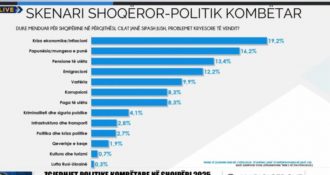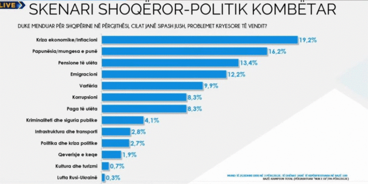 Në pyetjen në sondazh cilat janë sipas jush, problemet kryesore të vendit, shqiptarët i janë përgjigjur;