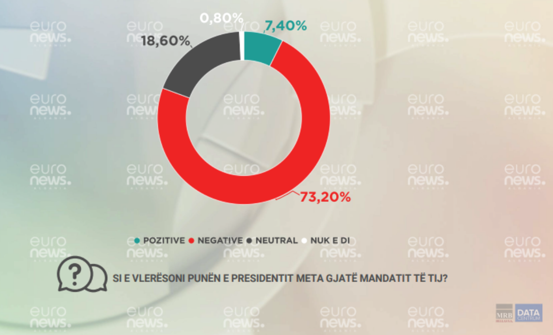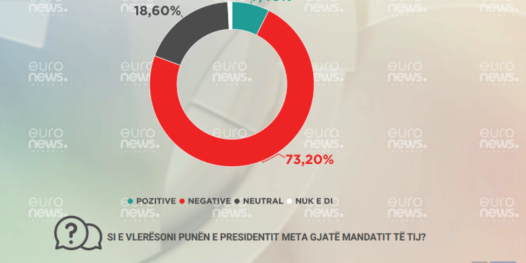 Ilir Meta nuk merr ndonjë vlerësim të mirë në mandatin e tij si president nga qytetarët shqiptarë. Barometri i publikuar në Euronews Albania tregon se 73% e të pyeturve e vlerësojnë negativisht punën e tij në këto 5 vjet.