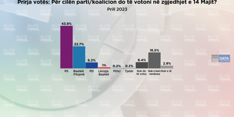 Barometri në Euronews Albania ka pyetur qytetarët e Tiranës se për kë parti do të votojnë në 14 maj. 43.9% e qytetarëve kanë thënë që do të votojnë Partinë Socialiste.