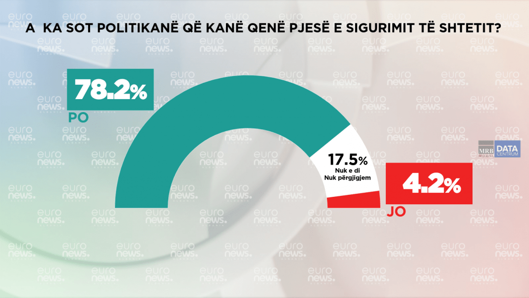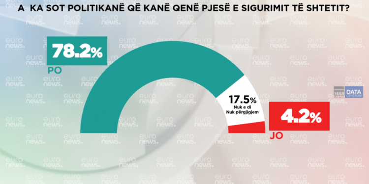 Shqiptarët mendojnë se politika shqiptare, edhe pse kanë kaluar 31 vite nuk ia ka dalë të pastrohet nga personat që kanë pasur lidhje me Sigurimin e Shtetit. Të pyetur nëse ka në politikë sot persona që kanë qenë pjesë e sigurimit 78.2% e tyre janë përgjigjur ‘Po’ dhe vetëm 4.2% e tyre mendojnë se nuk ka.