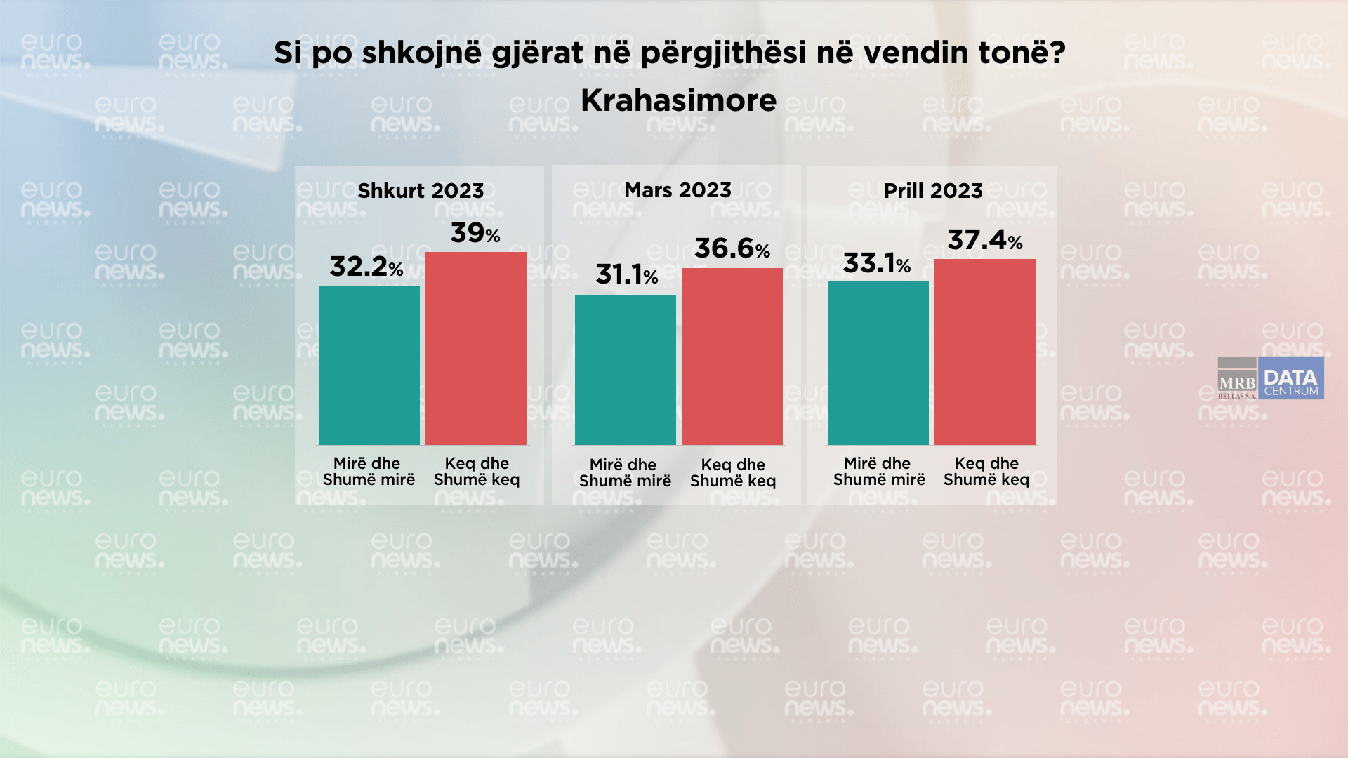 Ndërsa ata që mendojnë se gjërat po shkojnë keq nga 39% që ishin në shkurt, kanë pësuar një rënie në 36.6% në mars dhe më pas një rritje në prill duke shkuar në 37.4%