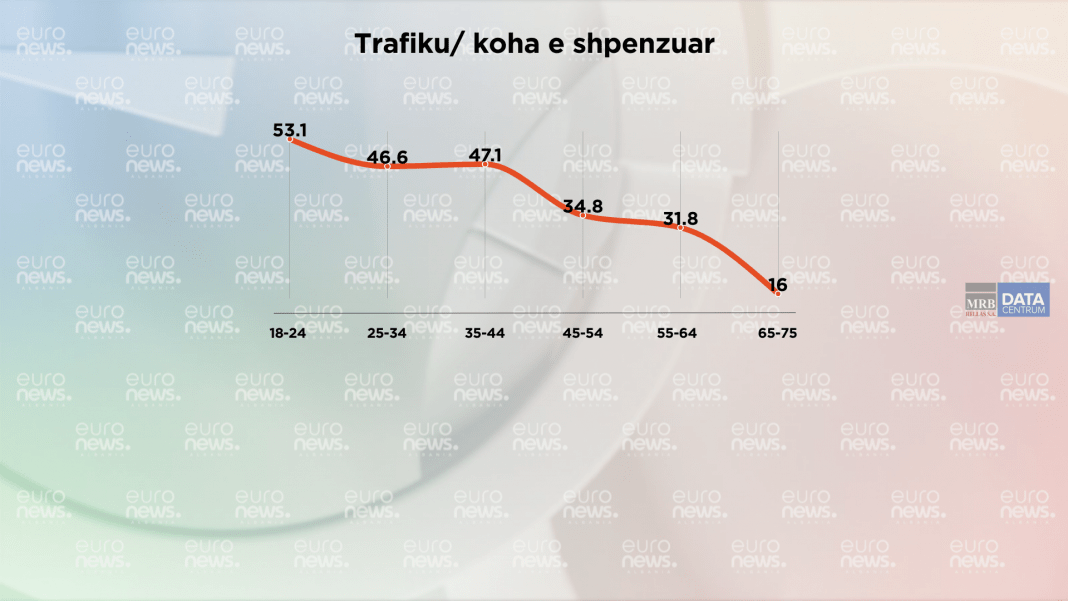 Sa i përket moshës që kanë renditur trafikun dhe kohën e shpenzuar si problematikë kryesore, 53.1 % e qytetarëve i përket grupmoshës 18-24 vjeç, 16% e tyre i përket grupmoshës 65-75 vjeç.