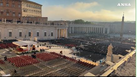 Është shkrimi i një pankarte të madhe që u shfaq në radhët e para të besimtarëve në Shën Pjetri ku sheshi po fillon të mbushet gjithnjë e më shumë.