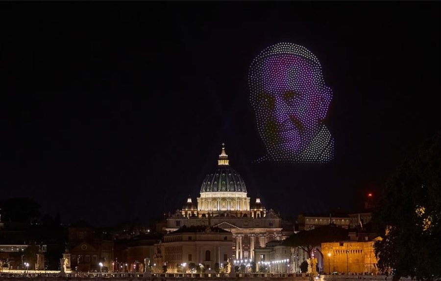 Një koncert madhështor me mijëra njerëz që u mblodhën në Sheshin e Shën Pjetrit në Romë po bën xhiron e rrjetit. Një spektakël dronësh që formoi edhe fytyrën e të ndjerit Papa Françesku ka tërhequr vëmendjen e të gjithëve.