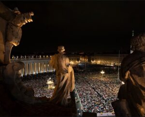 Ndërsa kori “Voices of Fire” solli frymën e muzikës Gospel, John Legend këndoi “Bridge Over Troubled Water” dhe Jennifer Hudson interpretoi një duet të fuqishëm me Bocellin, rreth 3,000 dronë u ngritën mbi kupolën e bazilikës për të rindërtuar me dritë momentin e famshëm ku Perëndia krijon Adamin, së bashku me versione të ndriçuara të “Pietas” dhe një portret të Papa Françeskut të ndjerë.