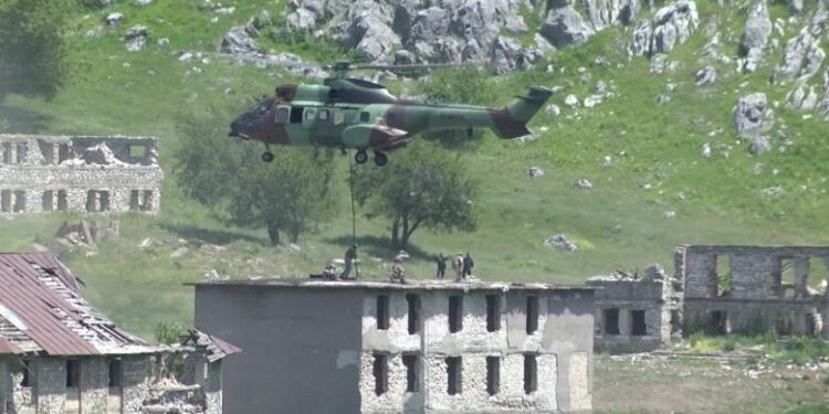 Kemi në ajër 2 helikopterë ushtarakë, njëri bënë sigurimin e zonës së operacionit, ndërsa tjetri po bën tërheqjen e personelit që ka rënë në kontakt. Ka filluar lëvizja e trupave dhe kemi strukturat e Forcave të Armatosura të cilat aktualisht janë duke zhvilluar një operacion mësymës kundër armikut’, tha kolonel Genti Bardhi, drejtues i stërvitjes.