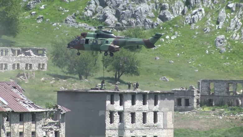 Kemi në ajër 2 helikopterë ushtarakë, njëri bënë sigurimin e zonës së operacionit, ndërsa tjetri po bën tërheqjen e personelit që ka rënë në kontakt. Ka filluar lëvizja e trupave dhe kemi strukturat e Forcave të Armatosura të cilat aktualisht janë duke zhvilluar një operacion mësymës kundër armikut’, tha kolonel Genti Bardhi, drejtues i stërvitjes.