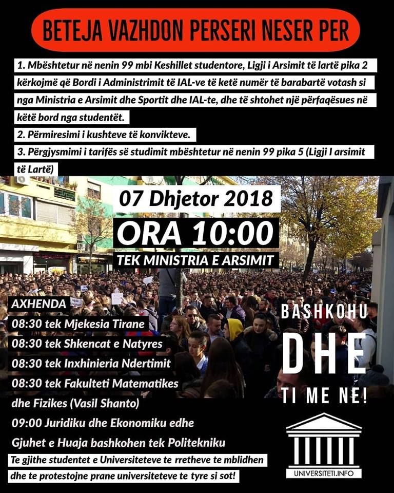 Në faqen Universiteti. Info në facebook ata kanë publikuar axhendën e protestës së bashku me kërkesat që kanë/a.çupaj