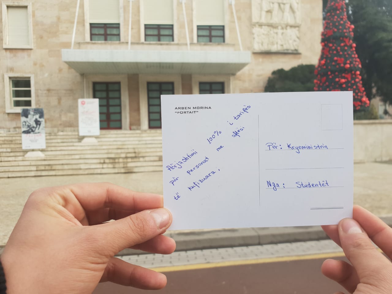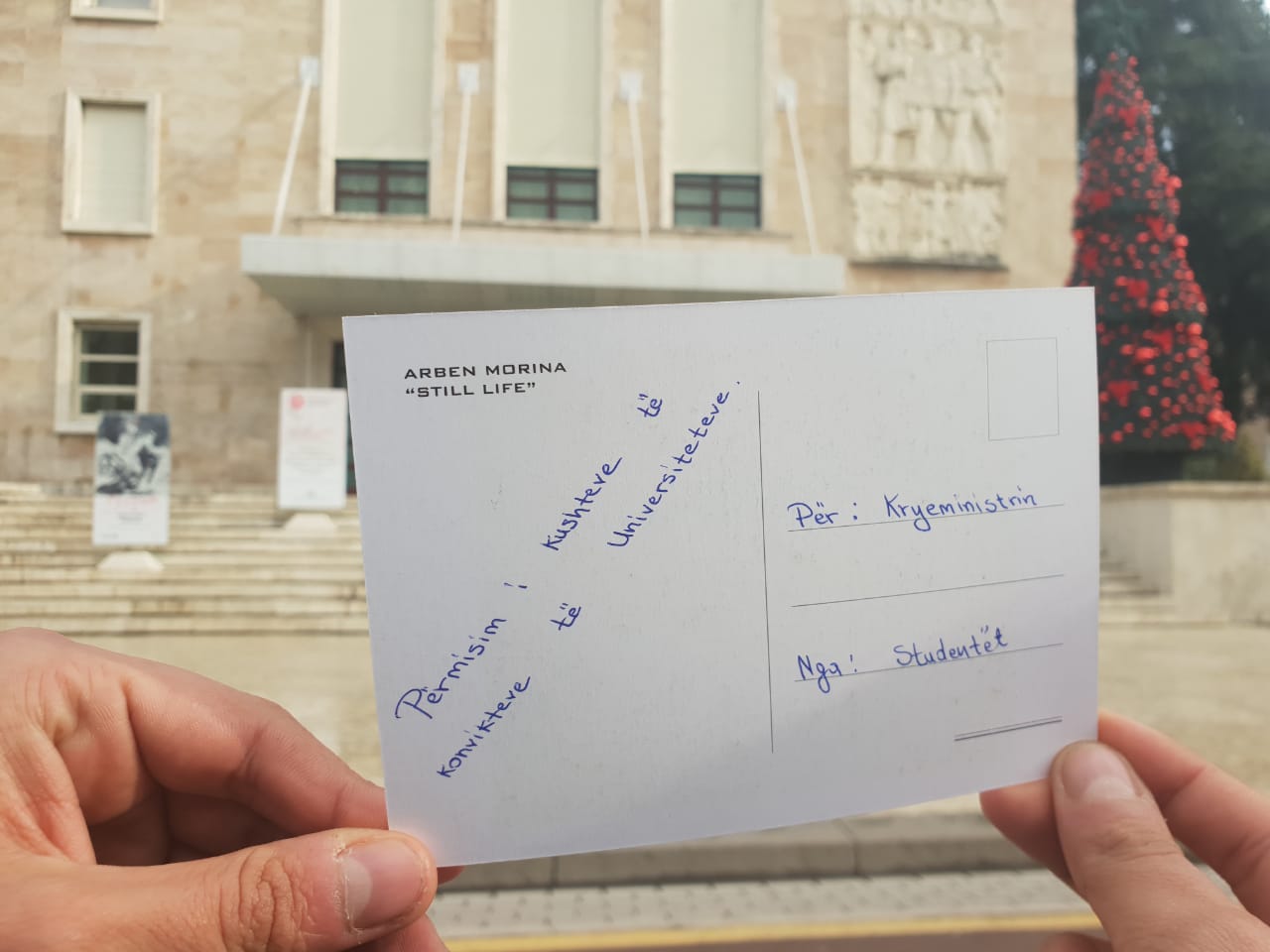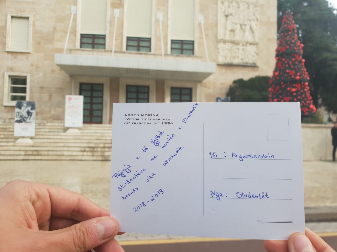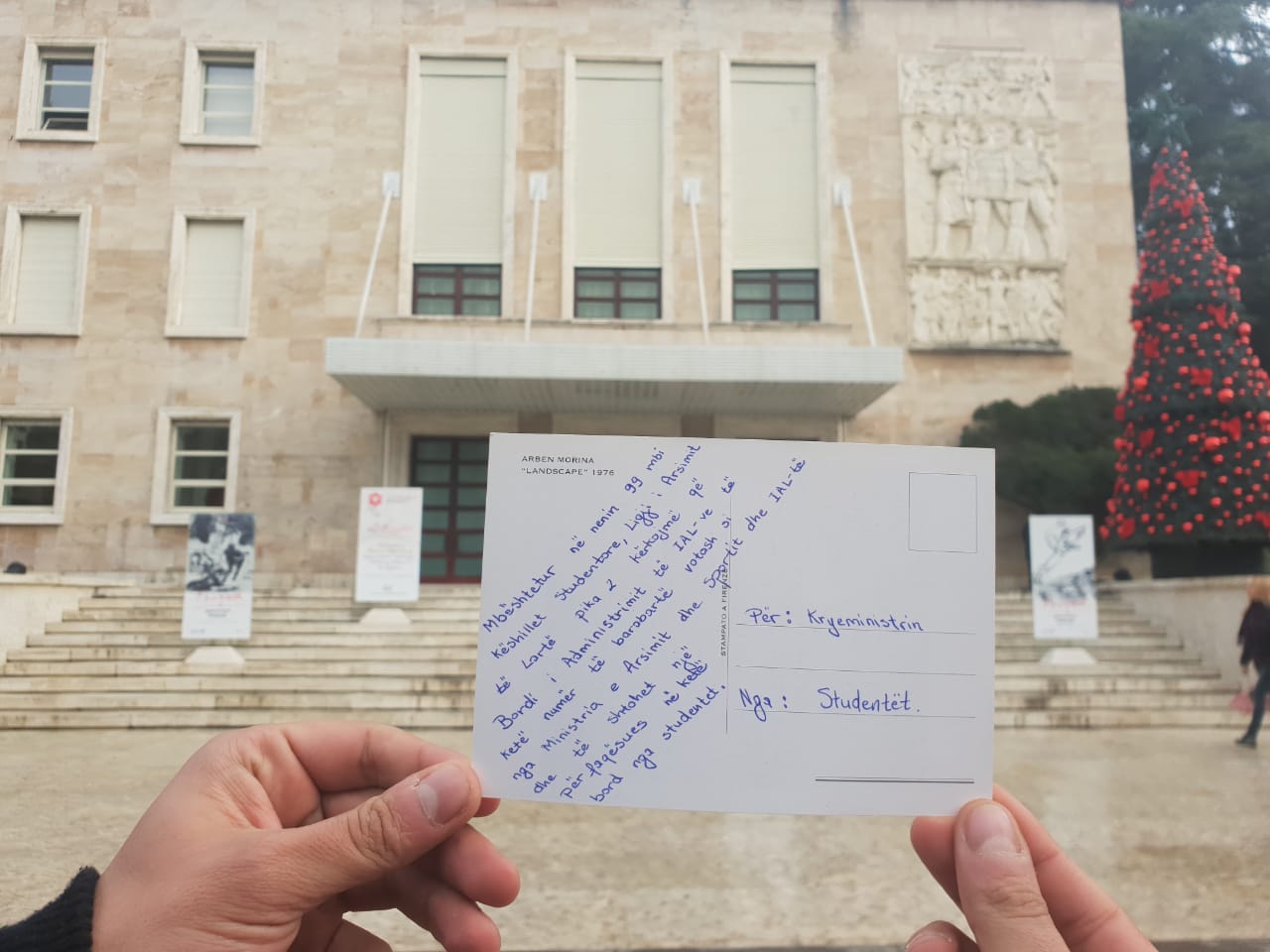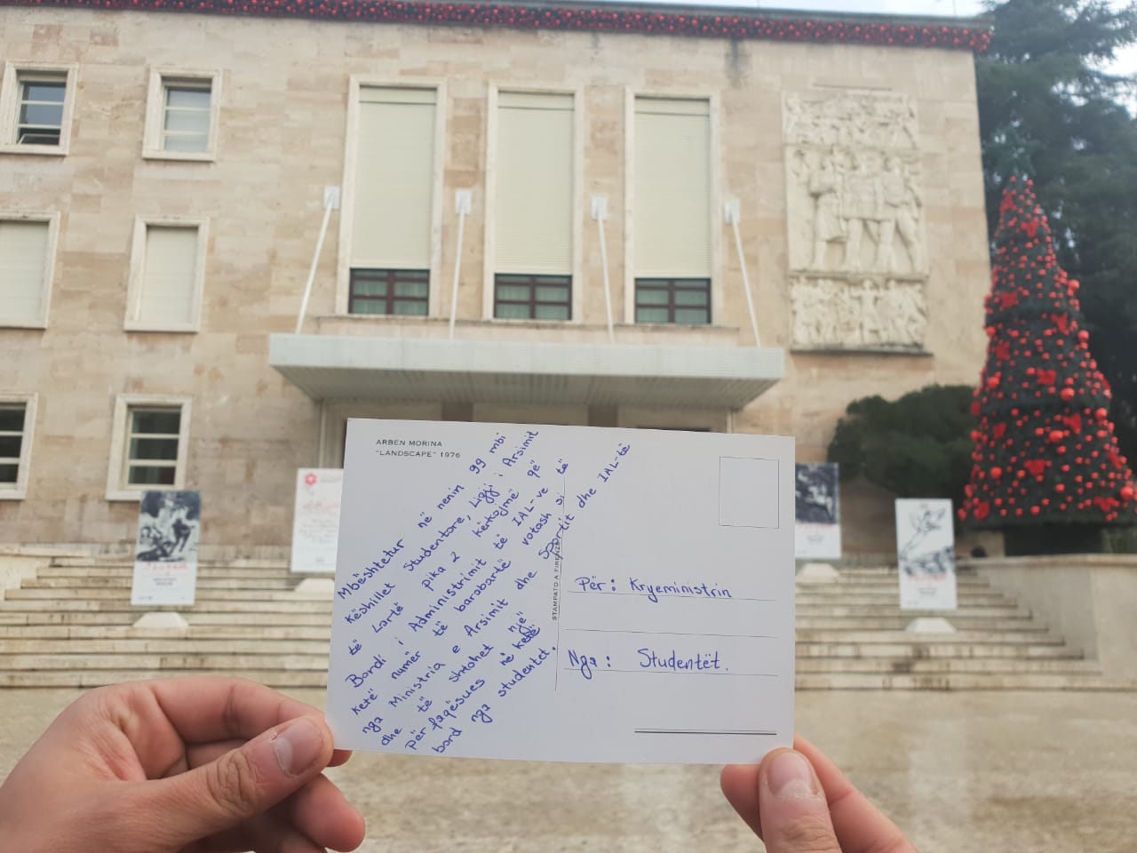 Në fakt bëhet fjalë për disa kartolina festash por jo me urime për Krishtlindjet dhe Vitin e Ri por me 9 kërkesat që studentët i kërkojnë qeverisë të përmbushë prej më shumë se 2 javësh./a.çupaj