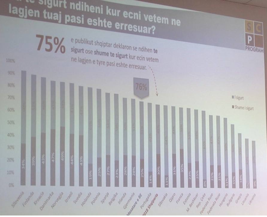 Gjatë prezantimit të studimit e pranishme ishte Zv.ministrja e Brendshme Romina Kuko dhe Drejtori i Sigurisë në Drejtorinë e Përgjithshme të Policisë së Shtetit Gjovalin Loka. Ai deklaroi se këto tregues do të shërbejnë për përmirësimin e punës së Policisë së Shtetit. /ma.me