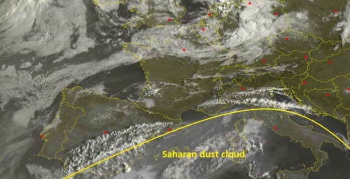 “Një re masive Sahariane pluhuri po shtrihet në Mesdhe, në skajet veriore“, shkruan në Twitter faqja meteorologjike.