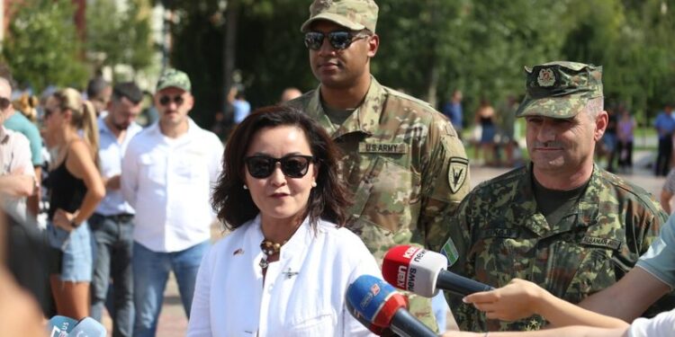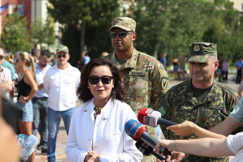 Ambasadorja e SHBA në Tiranë Yuri Kim ka folur pas fluturimit mbi sheshin “Skënderbej” të dy avionëve bombardues B52.