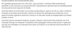deputetë, ku 441 rezultuan pa dokumente dhe 5 kandidatë për deputetë figuruan bashkëpunëtorë në dokumente të ish-Sigurimit të Shtetit.