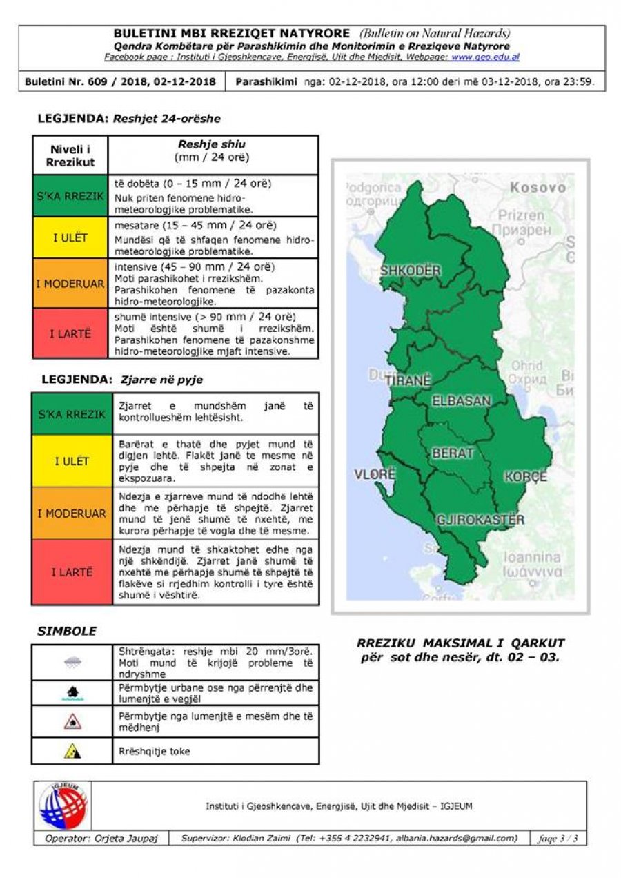 Sipas parashikimit të motit nga Instituti i Gjeoshkencave, Energjisë, Ujit dhe Mjedisit, ditën e sotme do të ketë rritje temperaturash, por edhe reshje shiu.