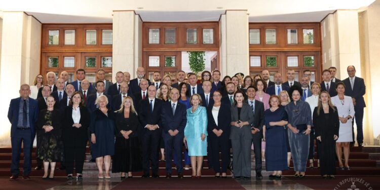 Presidenti i Republikës, Bajram Begaj priti në mbrëmje Trupin Diplomatik shqiptar që shërben në vende të ndryshme të botës. Kreu i Shtetit, në një fjalim të posaçëm, paraqiti vizionin e tij për një zë më të fuqishëm të Shqipërisë në arenën ndërkombëtare, në mbrojtje të interesave kombëtare në një kohë të mbushur me kriza dhe pasiguri.