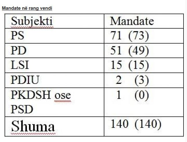 1. Të dhënat janë për çdo qark dhe në shifra absolute, të dhënat në përqindje (që përdorin zakonisht sondazhet) në një sistemin propocional rajonal si i yni, sidomos për subjektet e vogla, nuk thonë asgjë. Sa për shembull, në Qarkun Kukës një parti politike mund të marrë edhe 20% të votave dhe mund të mos marrë asnjë mandat deputeti.