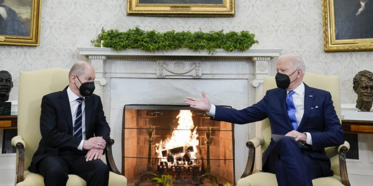 Presidenti Biden dhe kancelari gjerman Olaf Scholz biseduan për situatën e tensionuar në kufirin e Ukrainës me Rusinë, ku janë dislokuar rreth 100,000 trupa ruse. Pikë kyçe e mosmarrëveshjeve midis Uashingtonit dhe Berlinit është ndërtimi i gazsjellësit Nord Stream 2, që do të sjellë direkt gaz natyror rus në Gjermani. Pas takimit Presidenti i SHBA-së Joe Biden tha se nëse tanket dhe trupat ruse do të kalojnë kufirin dhe pushtojnë Ukrainën projekti i gazsjellësit Nord Stream 2 midis Rusisë dhe Gjermanisë nuk do të vazhdojë.