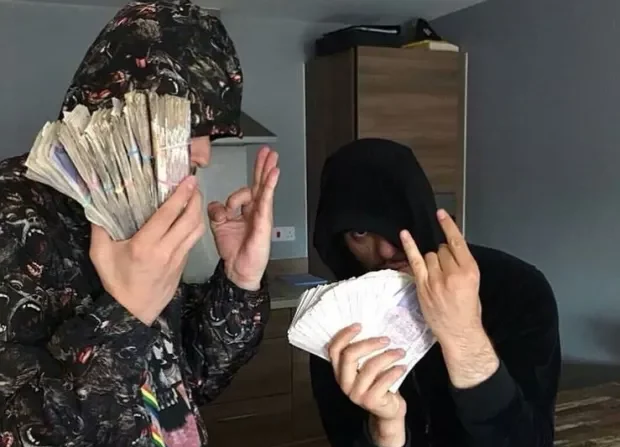 Në një klip tjetër në platformat e mediave sociale, një bandë me maska shfaqen duke kërcyer dhe kënduar para disa pakove me kokainë, vlera e së cilës shkon 80 mijë Paund një kilogram.