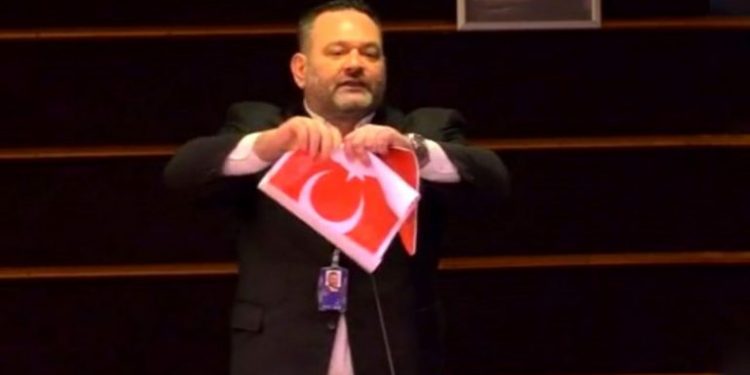 Ditën e djeshme gjatë një seance për emigracionin në Parlamentin Europian, Lagos grisi flamurin turk duke akuzuar Presidentin Erdogan se po lejon qëllimisht emigrantë ilegalë të kalojnë drejt Greqisë e cila është një anëtare e BE.
