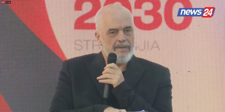 “Nga ana tjetër ne hymë këtu nga dera e kësaj kompanie këtu ku paga minimale është 700 Euro dhe flasim për sanitarë e ndihmës që duke marrë dijet e nevojshme pas një periudhe rriten në pagë. Ndërkohë që paga mesatare këtu është 1000 Euro ku sot në Shqipëri kemi një pagë mesatare 830 Euro. Kemi pasur një prodhim të përgjithshëm nën 10 miliardë Euro dhe sot e kemi prodhimin e përgjithshëm në rendin e afro 25 miliardë Euro dhe kjo është rritur nga puna dhe jo nga një arsye tjetër. Sot kermi nivelin më të ulët historik të papunësisë, 8.8%”, shprehet Rama.