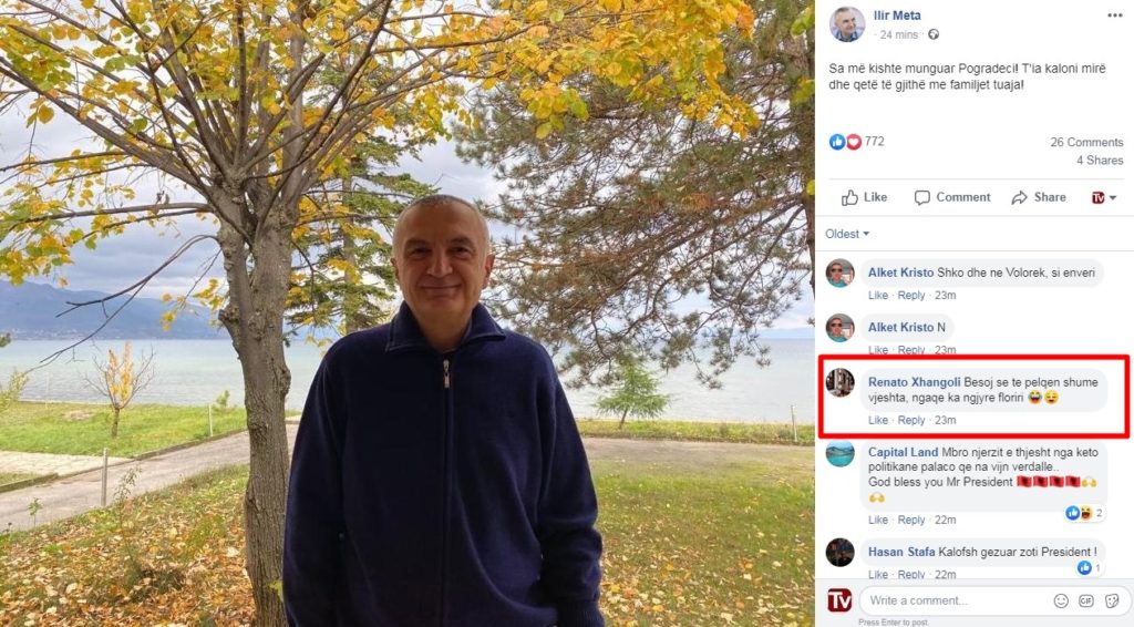 Ajo që ka rënë në sy është edhe komenti i një ndjekësi i cili ka ironizuar pozën e presidentit Ilir Meta mes gjetheve të vjeshtës.