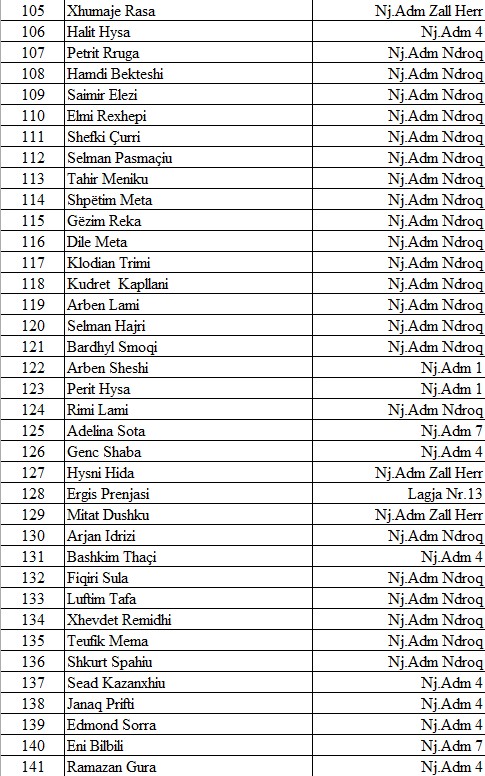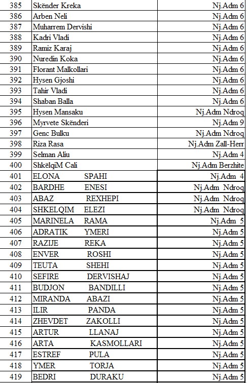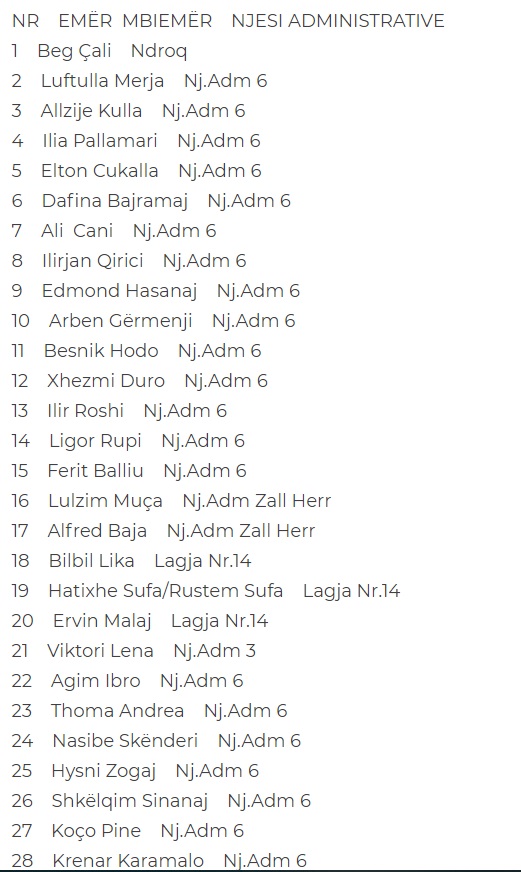 Njëkohësisht me këtë listë, me vendimin që u miratua dje në këshillin bashkiak të Tiranës, bashkia do të mundësojë 1 vit qera falas për të gjithë të prekurit nga tërmeti i fundit i 26 nëntorit në qarkun e Tiranës. /e.s/