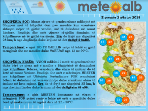 Pasditja dhe orët e para vijuese risjellin dominim të kthjellimeve në gjithë territorin. Era do të fyeje më shpejtësi 28 km/orë nga Juglindja, duke krijuar në det dallgë 2 ballë./a.ç
