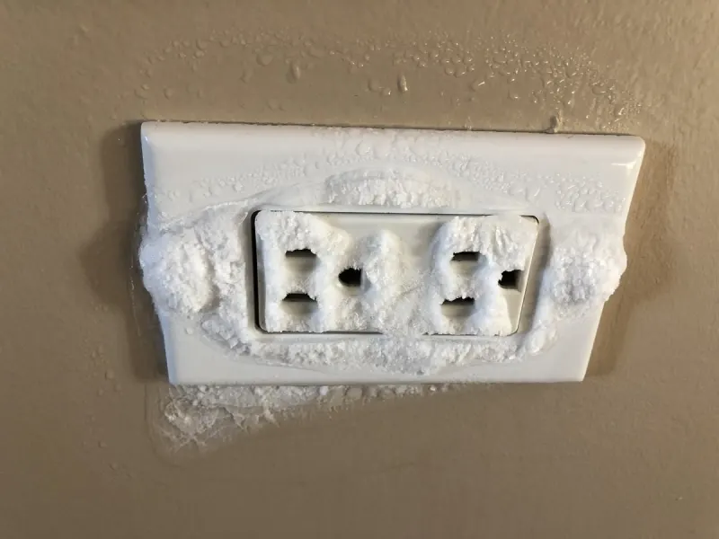Foto të dërguara nga njerëzit tregojnë më nga afër se sa ekstrem është i ftohti. Në disa raste, akulli ka hyrë edhe brenda në shtëpi, nëpërmjet prizave e dyerve të korridoreve.