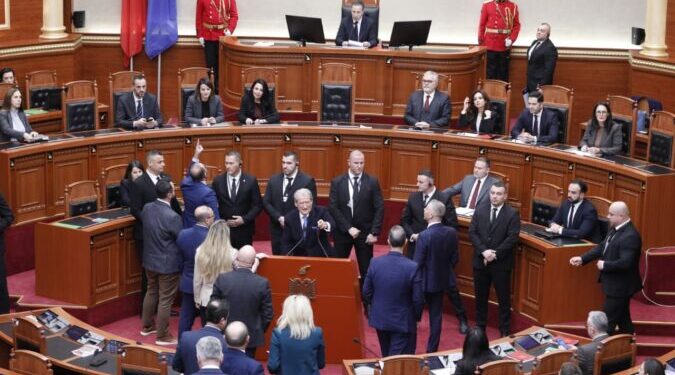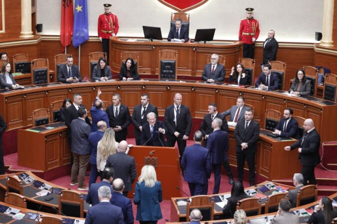 Ndërsa Kryetari i Kuvendit Niko Peleshi ka nisur fjalën e tij deputetët e opozitës kanë vijuar me zhurmë.