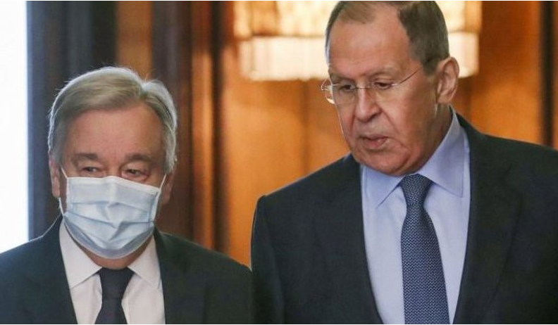 Konferenca e përbashkët për shtyp e sekretarit të përgjithshëm të OKB-së Antonio Guterres dhe ministrit të jashtëm rus Sergei Lavrov është zhvilluar me tone të ashpra.