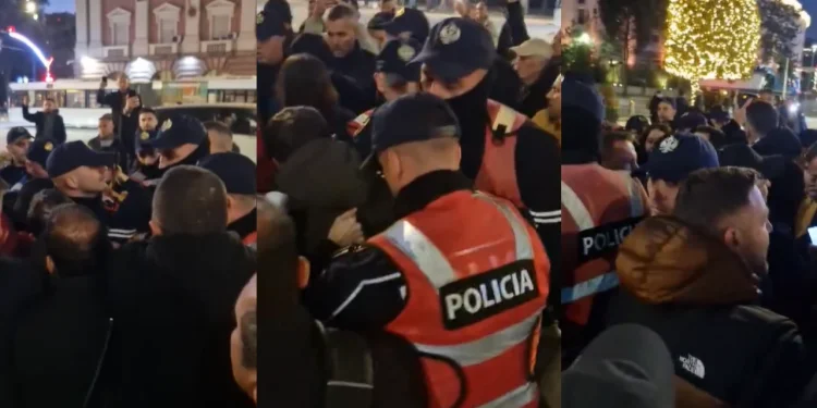 Policia, e cila mbërriti aty për të ndaluar grumbullimin dhe marrjen e gjeneratorit të vendosur përpara godinës, ka pasur reagim të personave prezentë.