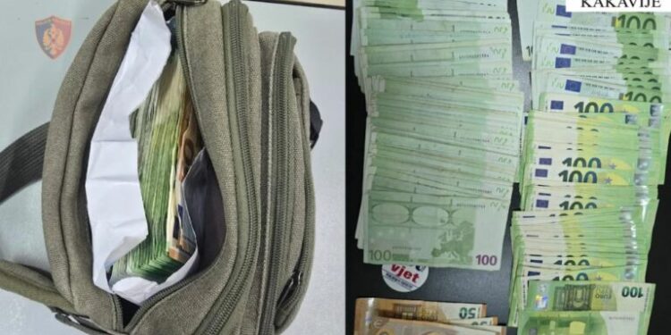 -në dalje, u kalua për kontroll në vijë të dytë, shtetasi F. I., të cilit i janë gjetur në çantë, 20 000 euro, që ai nuk i kishte deklaruar.