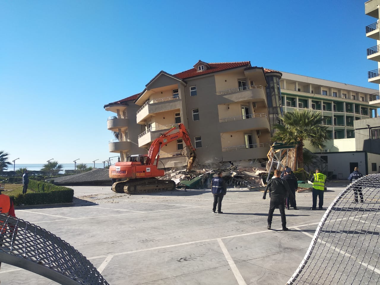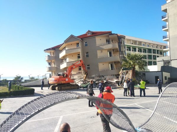 Ditën e sotme aksioni është përqendruar në një prej hoteleve të shembura në Durrës. Bëhet fjalë për hotelin ‘Vila Verde’, një ndërtesë 4 katëshe në zonë e plazhit që është shkatërruar komplet nga tërmeti, ndërsa rrezikon dhe ndërtesat e tjera aty pranë.