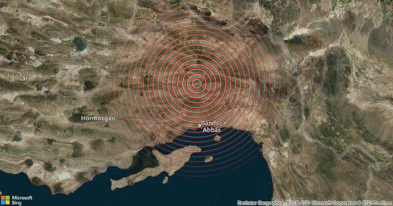 Tërmeti, i cili ra në orën 15:38 me orën lokale të dielën (1208 GMT), ishte e përqendruar rreth 64 kilometra (39 milje) në veriperëndim të Bandar Abbas, kryeqyteti i provincës Hormozgan, ose 278 kilometra (178 milje) në veri të Dubait.