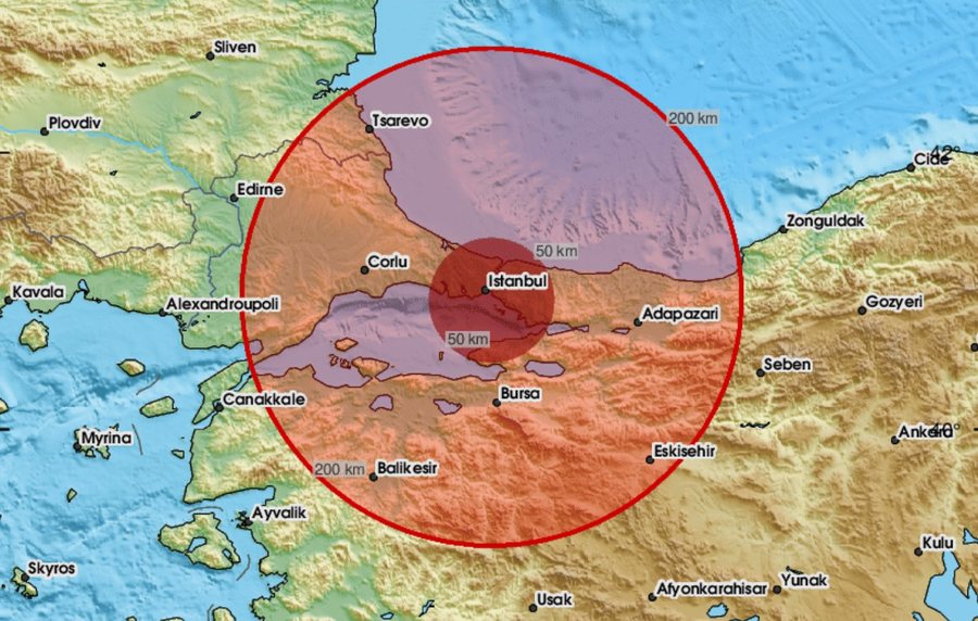 Një tërmet i fuqishëm me magnitudë 6.2 goditi Stambollin pak pas mesditës së të mërkurës, me epiqendër në Detin e Marmaras në një thellësi prej 7 km, duke zgjatur për rreth 13 sekonda.