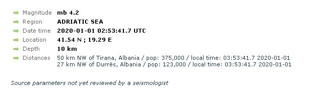 Sipas faqes evropiane EMSC, lëkundjet janë regjistruar në Detin Adriatik rreth orë 03:53 minuta, thuajse i njëjti orar kur ra tërmeti tragjik i 26 nëntorit që la pas 50 viktima.